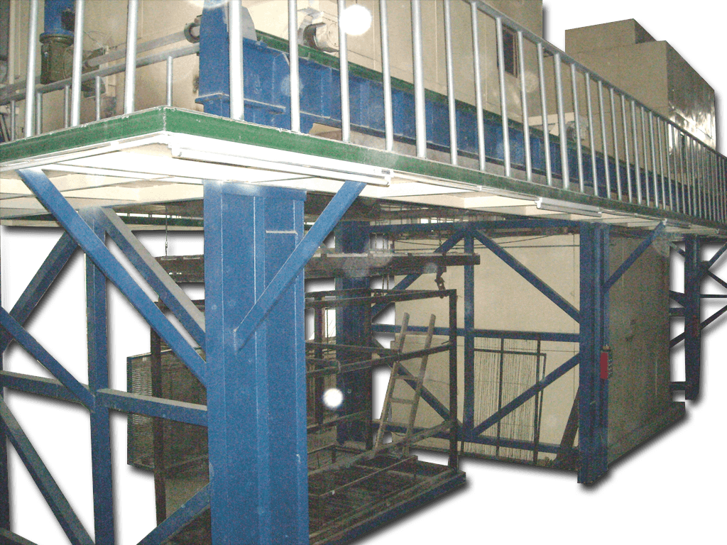 A steel structure upper floor platform comes with the equipment. The structure is strong enough to withstand the two pre-heating ovens. Protective fences are provided for safety purpose. There is also a staircase accessing to the platform. Operator could easily access for better observation, maintenance and filling of salt and additives as well.